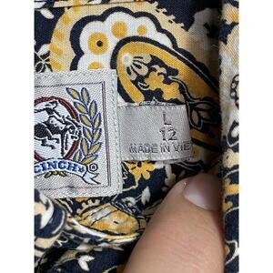 The Cinch Snap Down Long Sleeve Collar Shirt in Yellow, size Large, is a stylish button-up shirt designed for both boys and girls. The unisex kids' shirt features a classic collar and long sleeves, making it a versatile and comfortable option for everyday wear. The bright yellow color adds a pop of fun to any outfit, while the Cinch brand ensures quality and durability in children's clothing. Perfect for adding a cheerful touch to any wardrobe.