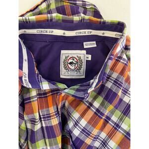Cinch Up Men's Purple Orange Green Plaid Western Long Sleeve Button Up Size M, measurements in pics, great condition, smoke free home