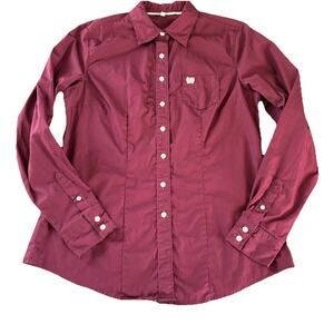 Cinch Women's Burgundy Western Button Up Long Sleeve Shirt Sz Large MSW9164030