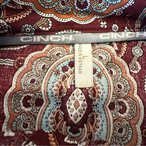 Cinch Women’s Large Long Sleeve Pearl Snap Western Shirt BurgundyTurquoise Print