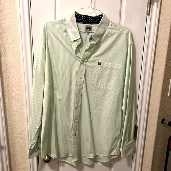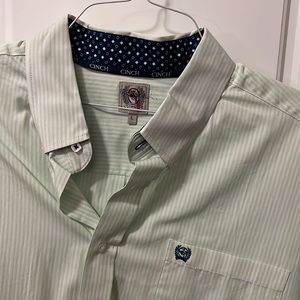 Mens striped light green western button down