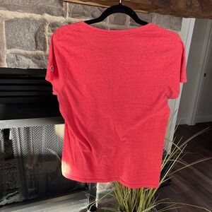 Women’s v-neck tee, light wear from washing
