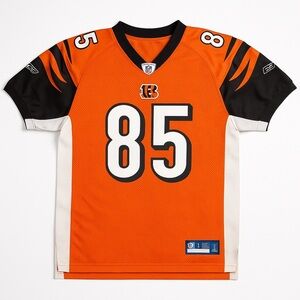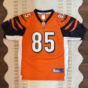 Official Cincinnati Bengals NFL jersey by Reebok, featuring Chad Johnson #85. Men’s size large.