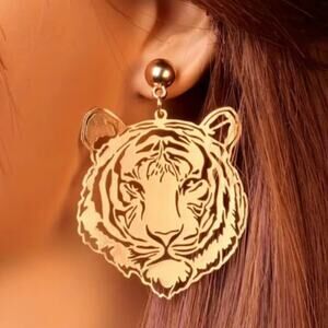 Cincinnati Bengals Tiger gold cutout drop earrings
