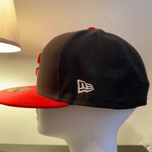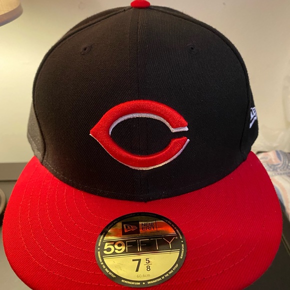 This listing is a brand new black and red Cincinnati Reds hat MLB baseball fitted cap. New era 59Fifty. Size 7 5/8, Two toned red brim hat.