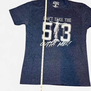 Navy country Blue Cincy Shirts 513 logo graphic tee in size ADULT MEDIUM. Featuring Cincinnati, Ohio Fountain Square statue. Like new condition.