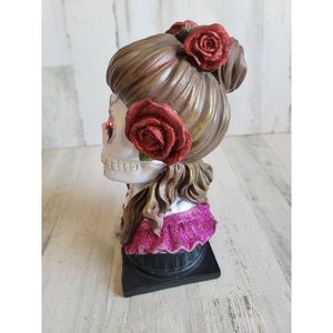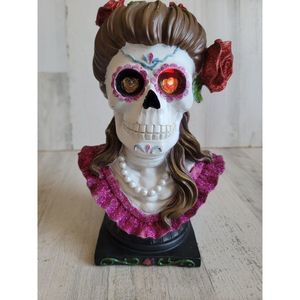Cinco de Mayo skeleton woman bust animated head Rose Halloween prop