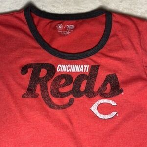 The Women's Genuine Merchandise Campus Lifestyle Cincinnati Reds Baseball Short Sleeve Medium Tee is the ultimate choice for any female fan who wants to support their team in style. Don't miss out on this must-have piece of fan gear. Order yours today and show off your Reds pride wherever you go!