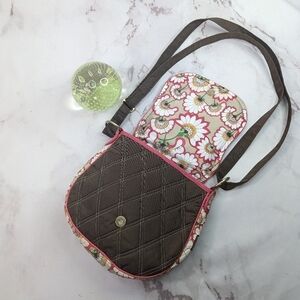 Cinda B Crossbody Purse Messenger Bag Brown Pink Quilted Adjustable Strap