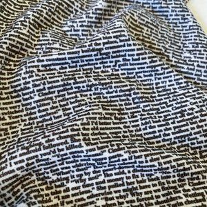 Every Litographs scarf is individually hand pressed to order. We use all-over dye sublimation so that the text covers every inch. Around 20,000 words at size 9 font.