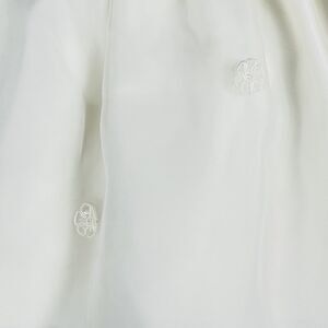 Color: Ivory/White with delicate floral embroidery and pearl center details