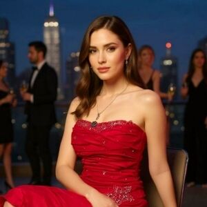 Cinderella Divine ✦ Red Strapless Prom Dress ✦ Lace-Up ✦ Bubble Hem ✦ Sz S ✦ NWT