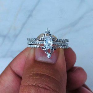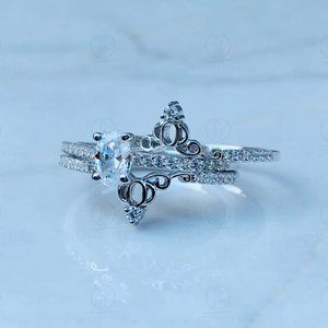 Disney Enchanted collection Cinderella Trio Rings. Middle ring is size 5 bands are size 4.7. 14k White Gold 3/4 Ctw Diamond bridal set.