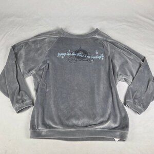 The Cinderella Velvet Pull Over Sweater in size XS is a stylish and cozy addition to any woman's wardrobe. Made by Disney, this gray sweater features a pullover style and velvet material, adding a touch of luxury to the classic design. Perfect for both casual and dressy occasions, this sweater is sure to become a versatile and comfortable staple for any woman's closet.