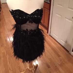 This is a beautiful Sequin Sweetheart Feather Cocktail dresses it can be worn as a Homecoming dress, Cocktail party or just a fun night on the town!