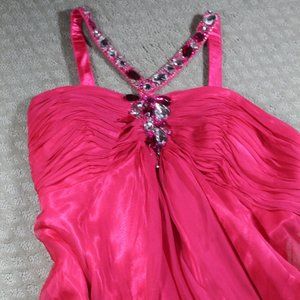 Beautifully beaded dark pink chiffon formal dress. Ruched bust on empire waist with a skirt that flows out from the bust. Excellent pre-owned condition - like new.