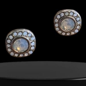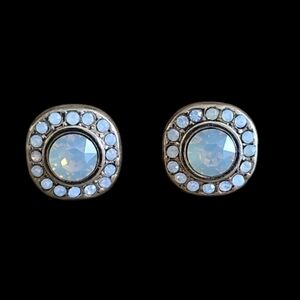 Elegant square stud earrings 10 mm. Features a moonstone center and smooth round corners. Surrounded by sparkling CZ stones and gold vermeil. Perfect for any occasion.