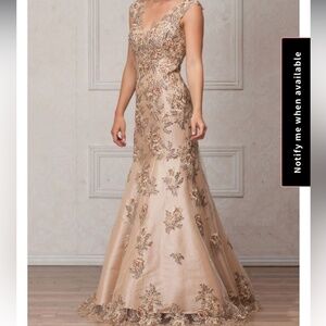 This is Floral embroidered Mermaid gown with corset back allows for easy adjustments to make this dress fit perfectly!