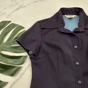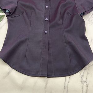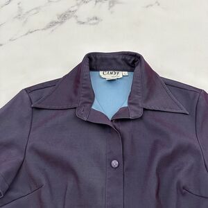 Cindy Collection women's vintage y2k purple and blue iridescent button up top, size L. It is free from any rips or stains but is missing a button, please see pictures. It measures about 38 inches around the bust and is about 23 inches long.