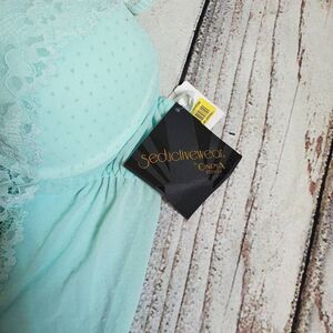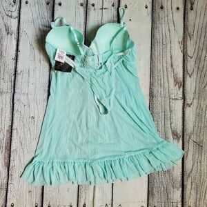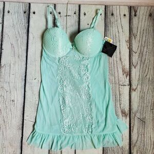 Cinema Etoile Seductivewear SMALL 2pc Celadon Chiffon & Lace Babydoll V-String