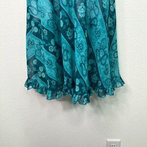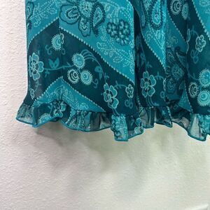 Cinema Etoile Vintage Blue Hipster Y2K Paisley Semi Sheer Ruffle Dress Size L