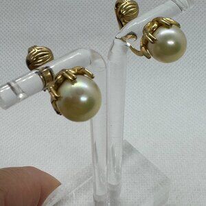 Ciner Clip On Earrings 10K Yellow Gold Pre Owned Faux Pearl Prong Set Signed