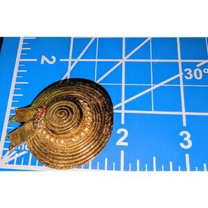 Ciner Signed Vintage Gold Tone Multi-Color Clear Rhinestone Straw Hat Pin Brooch. There is one red stone missing in the flowers and two rhinestones missing around the hat which are best seen with a loupe. The rhinestones are easy to pop in if you know what you are doing. I'm not very good at it, so I'll leave that for someone else. Pre-owned, this brooch has wear consistent with a vintage piece of this age.