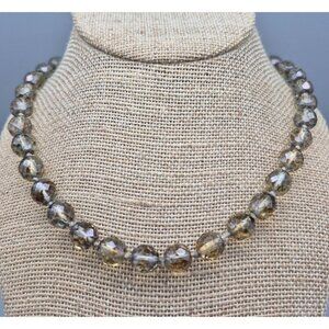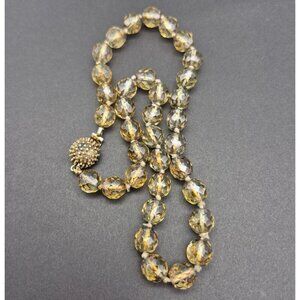 Ciner Vintage Glass Faceted Beads Collar Necklace Gold Tone Hidden Box Clasp 17"