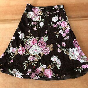 Cinnamon Girl Swing Skirt Women XS Green Floral Knee Length Preppie Pull On 17943