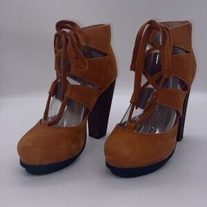 ✨🧡 Cinnamon Rust Burnt Orange Jeffrey Campbell x Free People Laced Heels 🧡✨