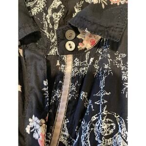 Cino Crinkle Button Up Blouse Long Sleeves Cotton Roll Tabs Sz L Shabby Chic