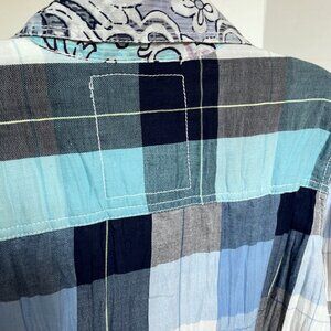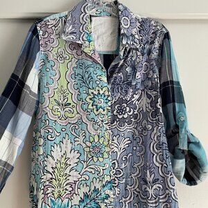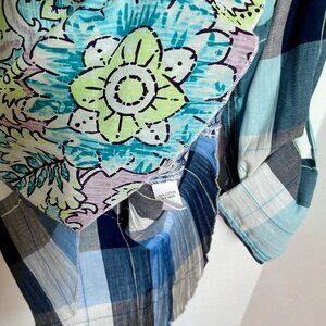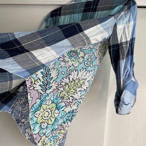Cino SUNDANCE Floral Plaid Mixed Print Button Down Top Size S Blue Cotton