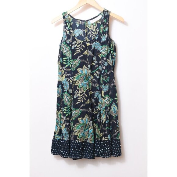 Cino Sleeveless Cotton Mini Dress Floral Print Blue Teal Womens Small NEW