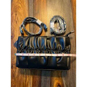 Spode purse in a black faux leather, comes with two additional leather straps and one chain strap.