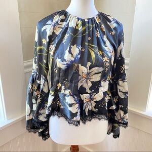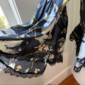 Cinq A Sept 100% Silk Avalon Dark Floral Blouse Fairy Quiet Luxury Designer