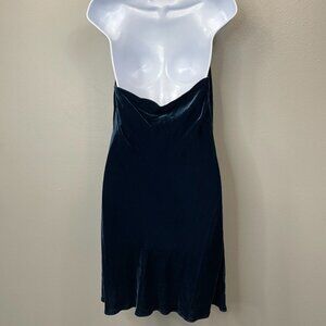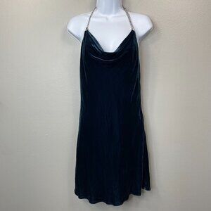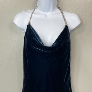 Cinq A Sept Anika Velvet Halter Dress Womens 8 Lapis Blue Chain Strap Silk Blend