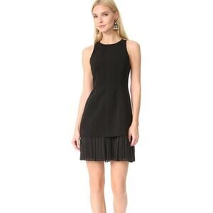 Cinq A Sept Catriona Sheath Dress Black Crew Neck Sleeveless Pleated Hem Size 2