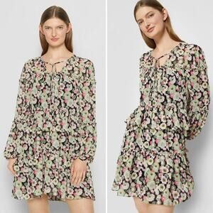 Cinq A Sept Dita Long Sleeve Floral Tiered Mini Dress Prickly Pear Size 4
