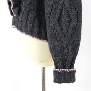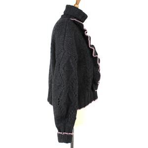 Cinq A Sept Edna Sweater Gray Pink Ruffle Front Cable Knit Turtleneck Size S