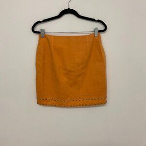 Cinq A Sept Floral Embroidered Studded Front Zip Mini Skirt Size 4 Orange