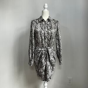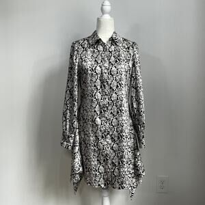 Cinq A Sept Gaby Tie-Front Snake Python Long Sleeve Shirt Dress Size 2
