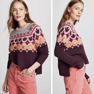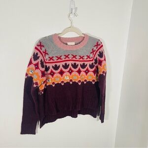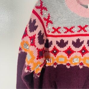 Cinq A Sept Gianni Fair Isle Sweater Wool Blend Knit Sequins Studded Preppy