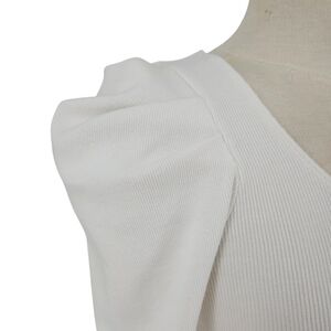 Cinq A Sept Henley Shirt White Puff Long Sleeve Rib Knit Rhinestone Button XS