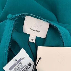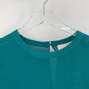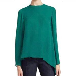 Cinq A Sept Henri Silk Top blouse Gulf Blue green DAMAGE diagonal hem new S