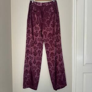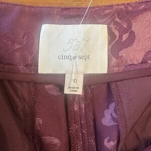 Cinq A Sept Jacquard Collins Pant, Satin Brocade, Fig Burgandy, Holiday, size 10