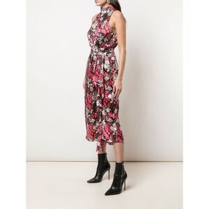 Cinq A Sept Julian Floral Print Black Pink Silk Dress Size 8