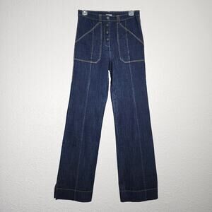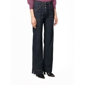 Cinq A Sept Long Benji Pant Indigo Denim Button Fly Straight Leg Size Small 4