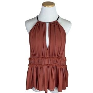 Cinq A Sept Lotus Peplum Silk Halter Top