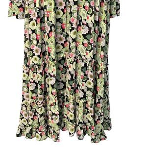 Cinq A Sept Lucille Tiered Ruffle Floral Midi Dress Abstract Green Prairie 0 NWT