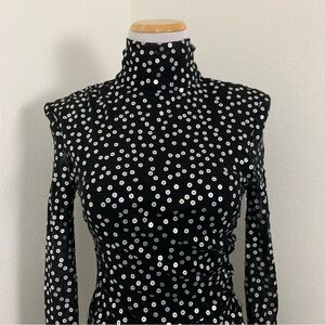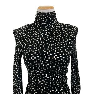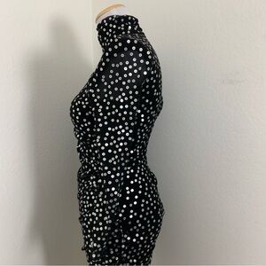 Cinq A Sept Marlene Mini Dress Womens 4 Black With Silver Sequins Ruched Side